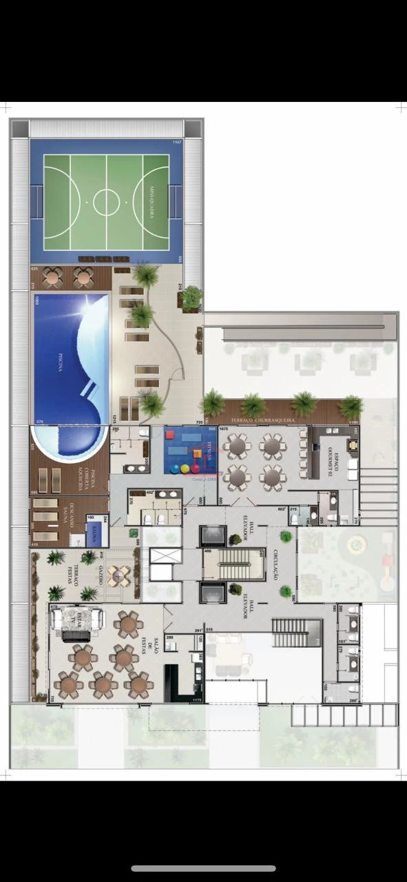 O prédio conta com uma estrutura completa de laser com piscinas, quadra esportiva e espaço gourmet.