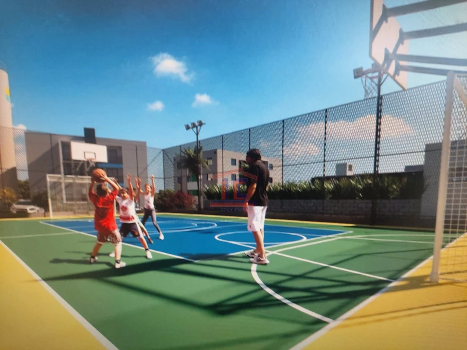 Condôminio conta com piscina,quadra poliesportiva, parquinho e salão de festas com churrasqueira.